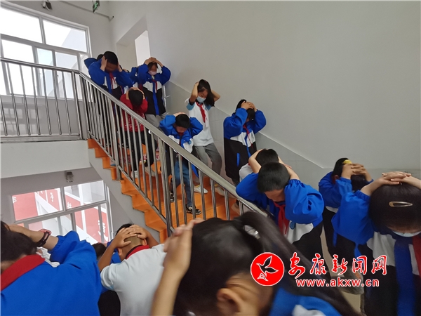 演練分為室內(nèi)緊急避險和應(yīng)急疏散兩個環(huán)節(jié)。上午9時許,隨著第一次地震防空警報聲急促響起,各班班主任立刻指導(dǎo)學(xué)生室內(nèi)防震技能,指揮學(xué)生迅速躲在各自課桌的旁邊,閉眼,蹲下身體擋住頭部。1分鐘后,再一次發(fā)出地震防空警報聲,在老師的引導(dǎo)下,各班有序秩地撤離,撤離全程不到三分鐘。