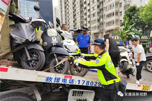 針對車輛亂停亂放等交通秩序管理問題,執(zhí)法人員對花園大道、秦嶺大道、學(xué)府路、高新四路等主次干道沿線開展全天候整治,并向沿街商戶下發(fā)摩托車、電動車規(guī)范停車告知書。對占用人行道、消防通道、公交泊位等行為進(jìn)行拍照取證后強制拖移。同時,向市民群眾發(fā)放文明交通宣傳彩頁,引導(dǎo)大家自覺摒棄交通陋習(xí)、遵守交通法律法規(guī),安全文明出行。