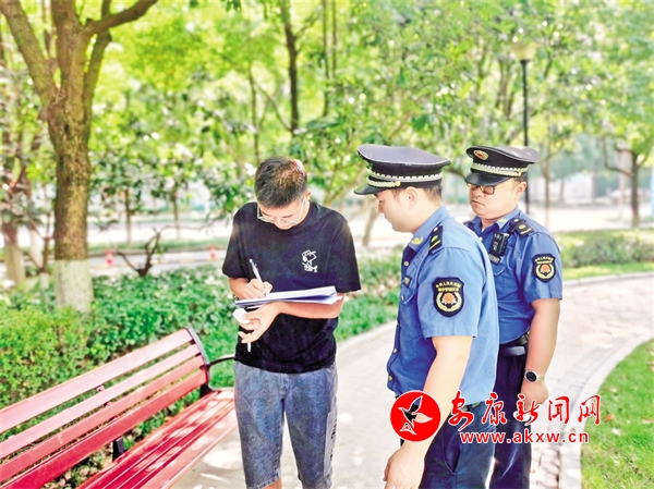 連日來(lái),漢濱區(qū)、高新區(qū)城管部門(mén)在中心城區(qū)全域持續(xù)開(kāi)展“文明有我 痰吐文雅”專(zhuān)項(xiàng)糾治執(zhí)法行動(dòng)。城管執(zhí)法人員依據(jù)規(guī)定,對(duì)“隨地吐痰”等不文明行為人,處以十元以上五十元以下的罰款,或以發(fā)朋友圈集贊的方式接受柔性執(zhí)法免于罰款。據(jù)統(tǒng)計(jì),截至9月6日,已開(kāi)展現(xiàn)場(chǎng)處罰258人次,其中開(kāi)具罰單62張。圖為隨地吐痰的市民正在接受行政處罰。屈明佳 攝