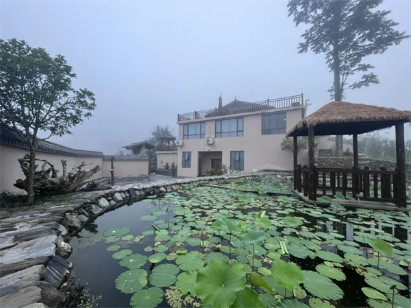 依山而建,筑于高處,坐北觀南,擁有極佳的自然景觀,屋后環(huán)繞潺潺溪澗從山頂流下,這里入眼處處是風景,耳畔陣陣是樂章。
