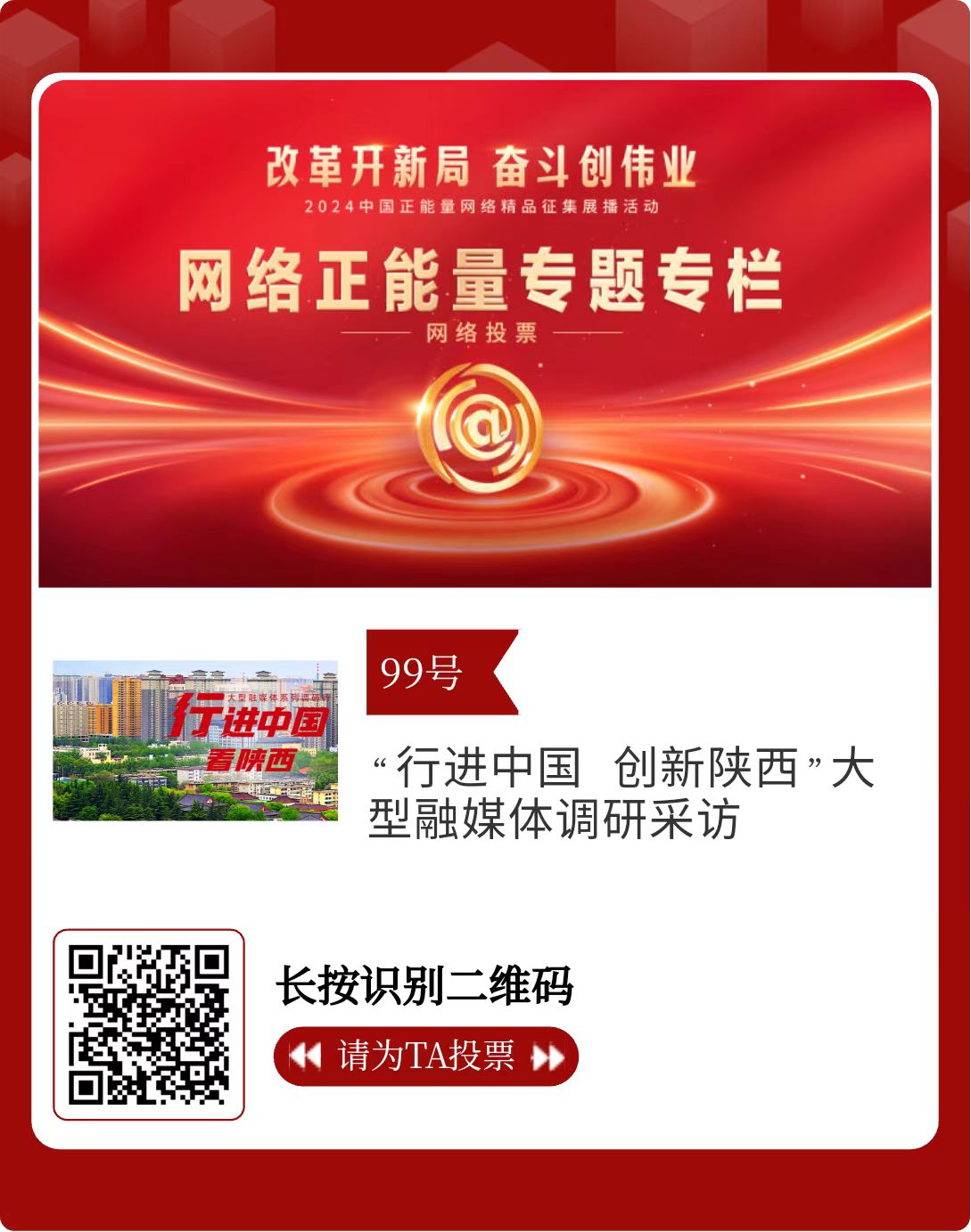 陜西省32件作品進(jìn)入投票環(huán)節(jié),投票時(shí)間為2月15日至2月21日,投票結(jié)果將作為中國(guó)正能量網(wǎng)絡(luò)精品遴選的重要參考。中國(guó)正能量網(wǎng)絡(luò)精品,期待每一個(gè)充滿正能量的你投出點(diǎn)贊一票。