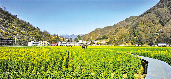 春暖花開,旬陽市仁河口鎮(zhèn)水泉坪千畝油菜花海競相綻放,慕名而來的游客們在觀光步道上觀光散步,三五伙伴一起拍照打卡、合唱民歌,欣賞高山出平川的獨(dú)特自然風(fēng)光。