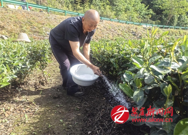 “沒想到政府直接把肥料送到茶園里了,既省時又省力,服務真是太周到了。我的2畝茶園分了70斤肥料,再過一段時間就可以機采夏秋茶了。”茶農(nóng)康中強滿臉喜悅地說。說話間,康中強順手將盆里的肥料,撒進挖好的茶壟里。