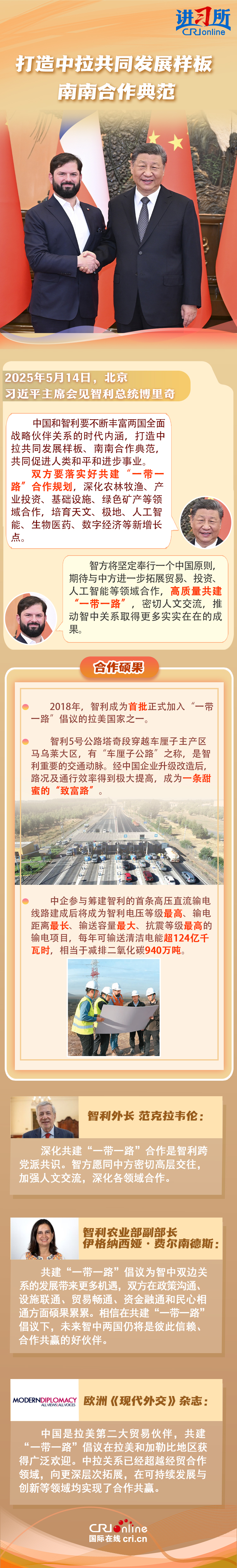 拉方各界人士認為,共建“一帶一路”倡議為中拉雙方帶來更多機遇,應(yīng)持續(xù)通過共建“一帶一路”等方式加強合作、共謀發(fā)展,進一步造福“全球南方”國家。