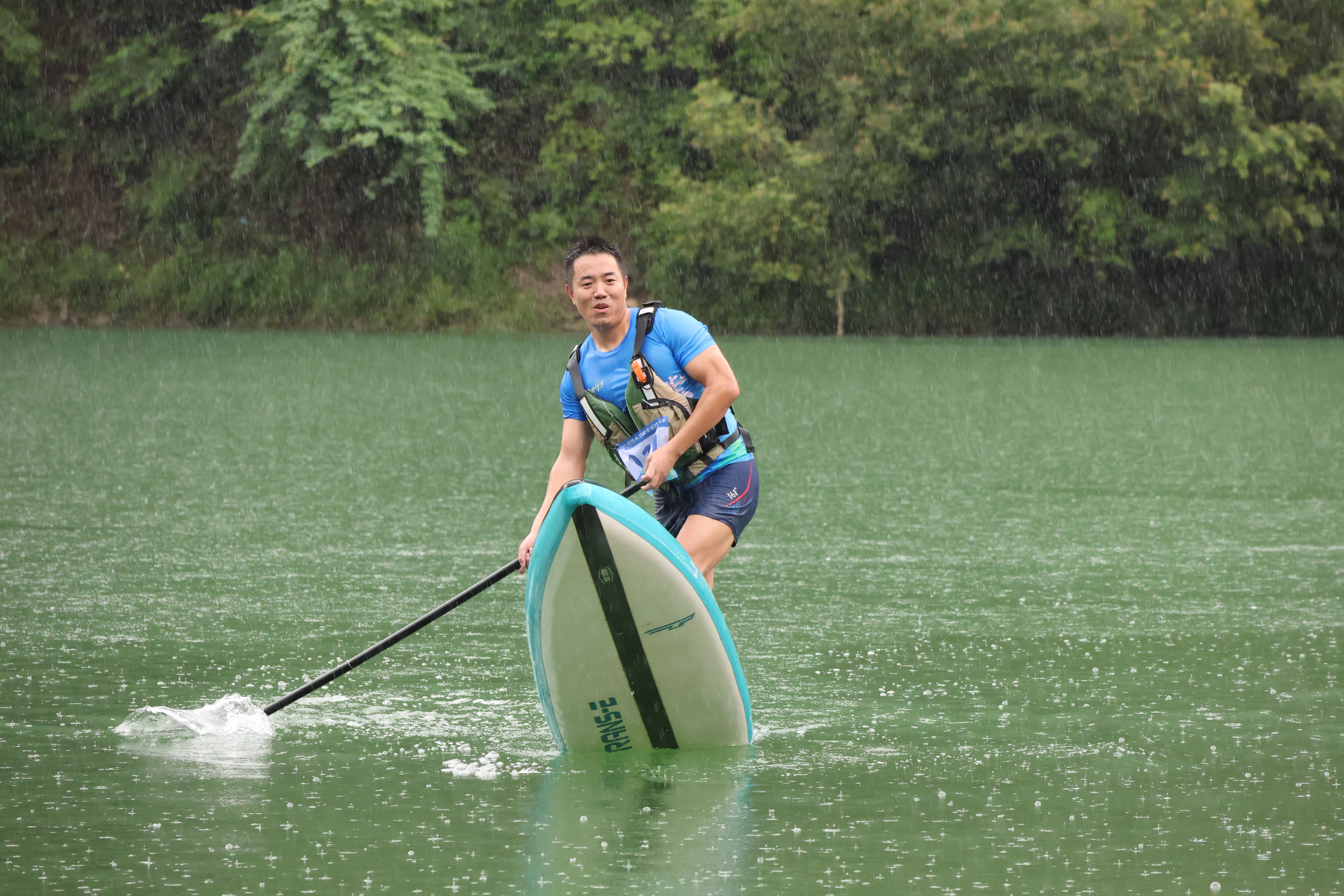 隨著發(fā)令笛聲劃破寧?kù)o,49名選手揮槳競(jìng)逐,一道道鮮艷的槳板如彩蝶點(diǎn)水,在翠谷碧波間劃出粼粼波紋,體育的活力與自然的靜謐交相輝映,賦予這片山水別樣的動(dòng)感與詩(shī)意。