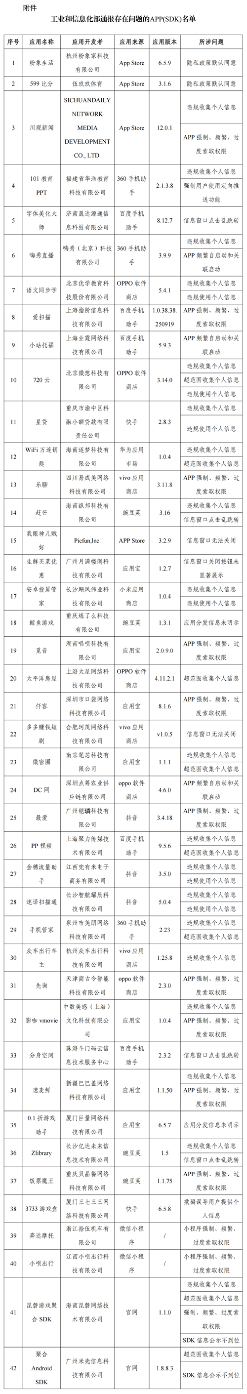 通報:工信部通報!這42款APP及SDK存在侵害用戶權(quán)益行為