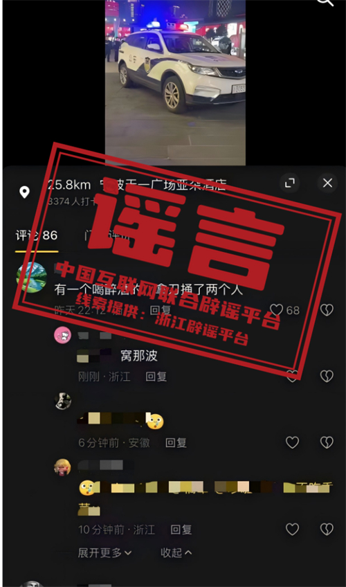 辟謠:“寧波天一廣場(chǎng)有醉酒人員持刀捅兩人”系謠言