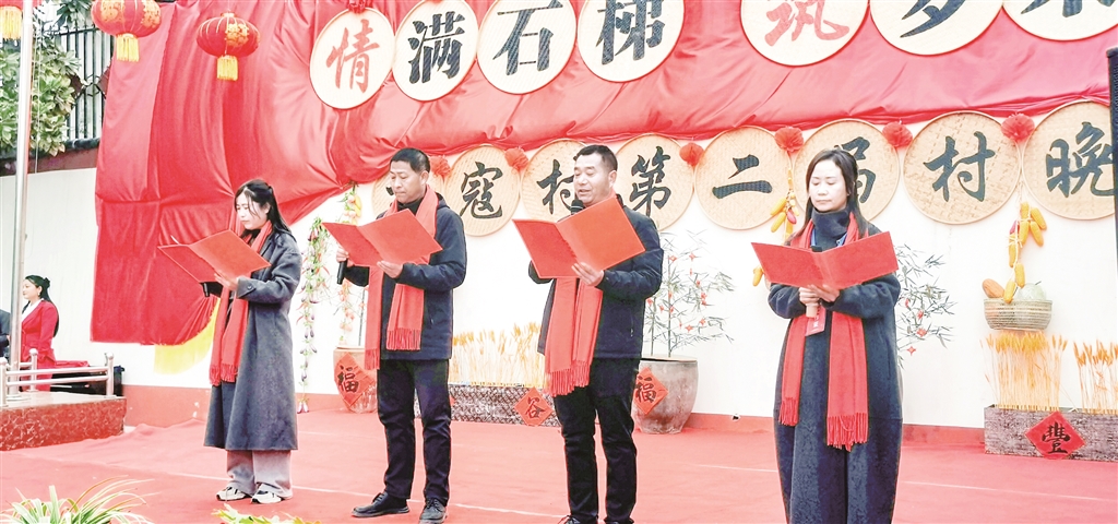 “咚咚鏘!咚咚鏘!”楊寇村村民鑼鼓隊的精彩表演拉開了“村晚”序幕?;顒又?,12名“先鋒黨員”、3戶“人居環(huán)境整治示范戶”與9名“孝義之星”榮獲表彰,胸前的榮譽證書映紅了村民們樸實的笑臉。