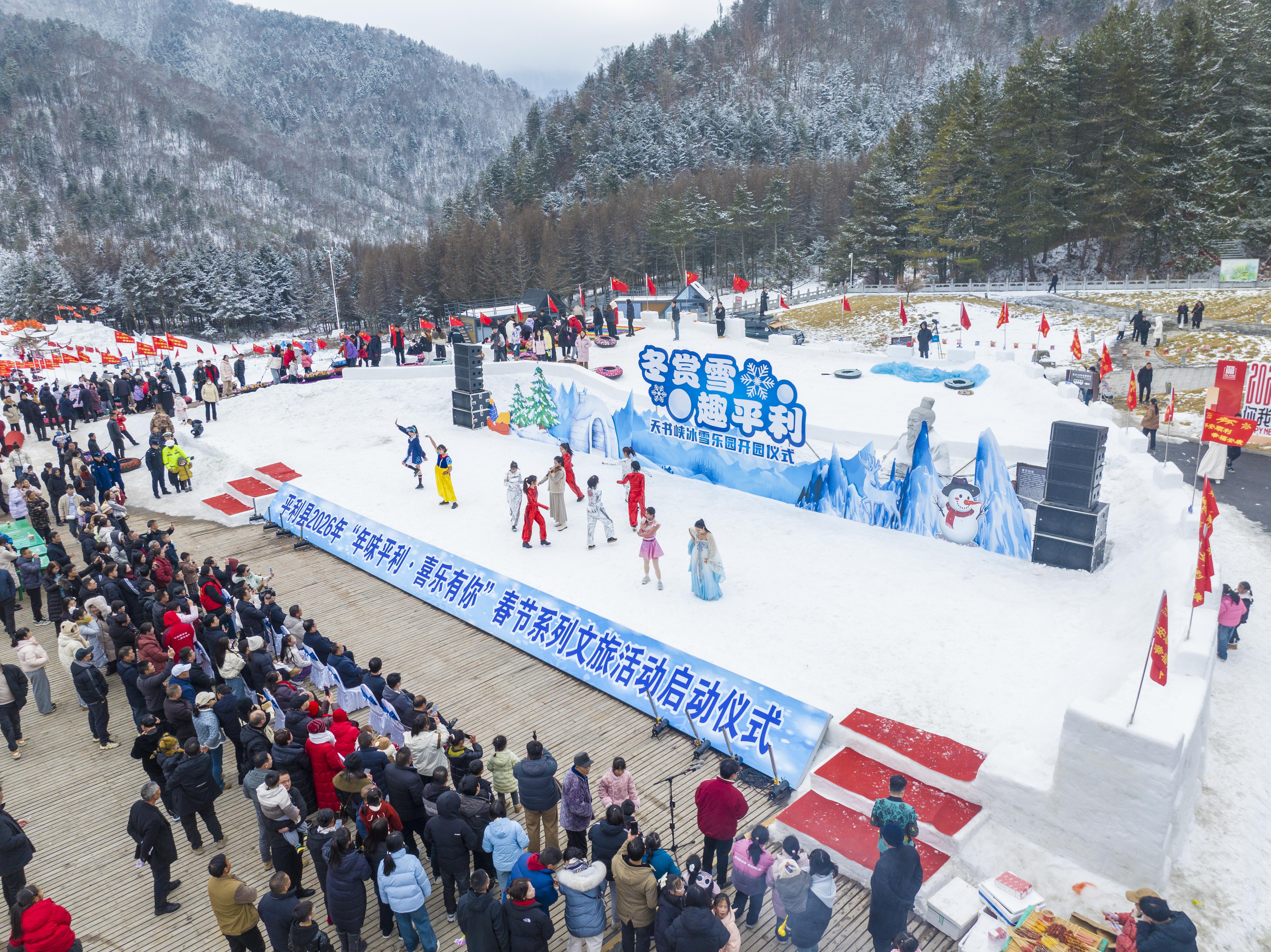 2月1日,“冬賞雪·趣平利”天書峽冰雪樂園暨2026年“年味平利·喜樂有你”春節(jié)系列文旅活動(dòng)啟動(dòng)儀式在八仙鎮(zhèn)天書峽景區(qū)舉辦。開園當(dāng)日,景區(qū)同步開放了冰雪游樂區(qū)、美食體驗(yàn)區(qū)與農(nóng)特產(chǎn)品展銷區(qū)。在農(nóng)特產(chǎn)品展銷區(qū)集中展示了高山蜂蜜、手工芝麻糖、八仙臘肉等縣域優(yōu)質(zhì)農(nóng)產(chǎn)品,讓游客在游玩的同時(shí),還能把“平利味道”帶回家。