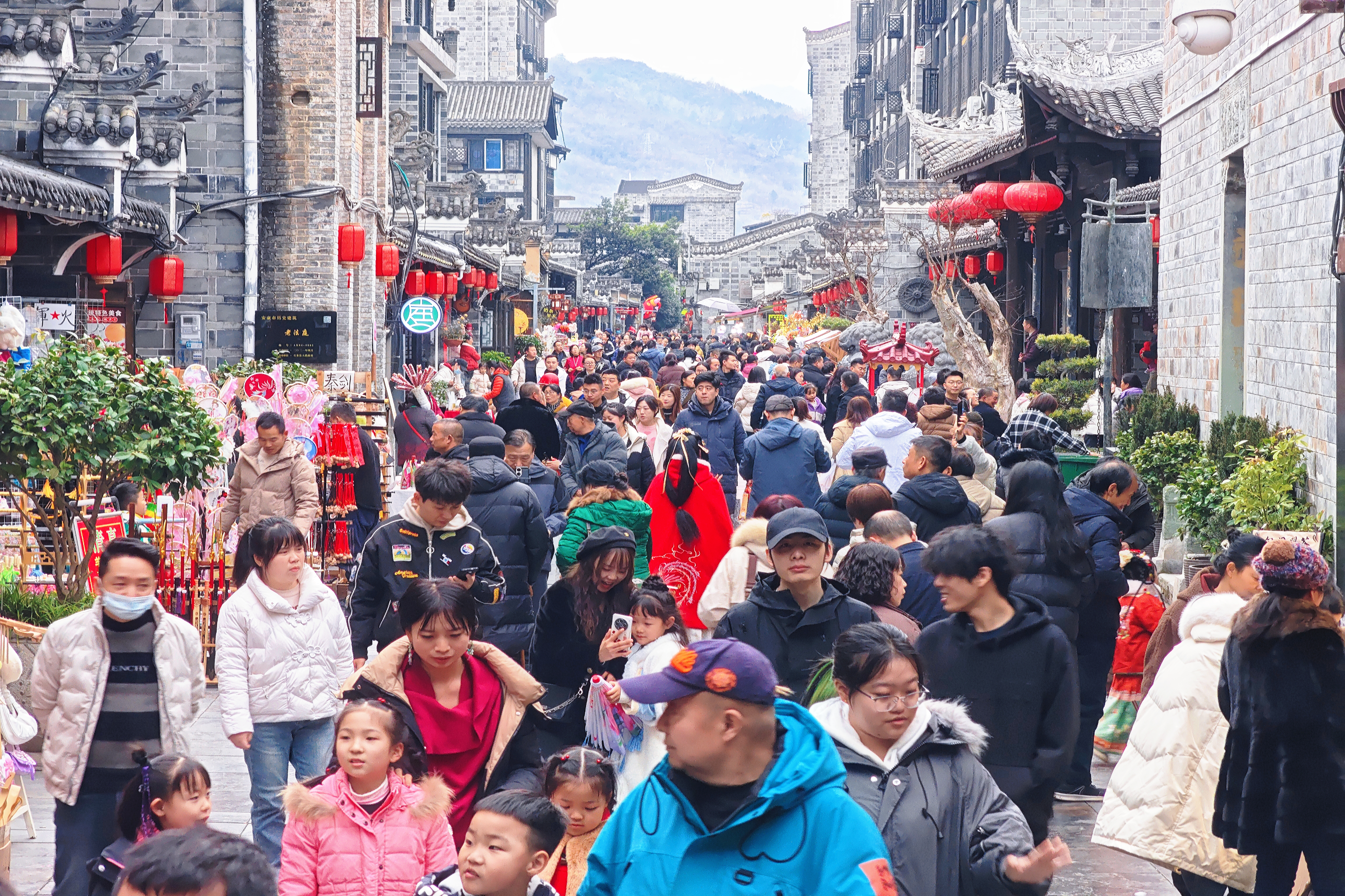 在紫陽縣蒿坪鎮(zhèn)集市,居民正在采購年貨。 陳軍 攝