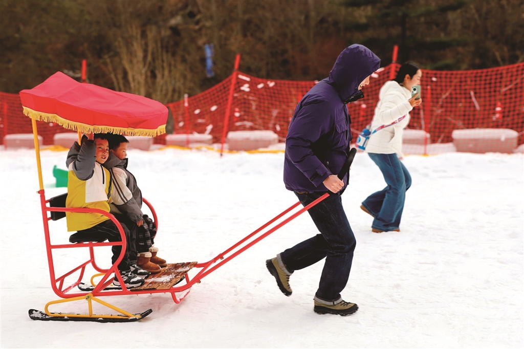 2月18日,游人在寧陜縣皇冠雪鄉(xiāng)體驗(yàn)冰雪娛樂(lè)項(xiàng)目。當(dāng)日皇冠雪鄉(xiāng)接待游客1813人次。黃太萱 攝