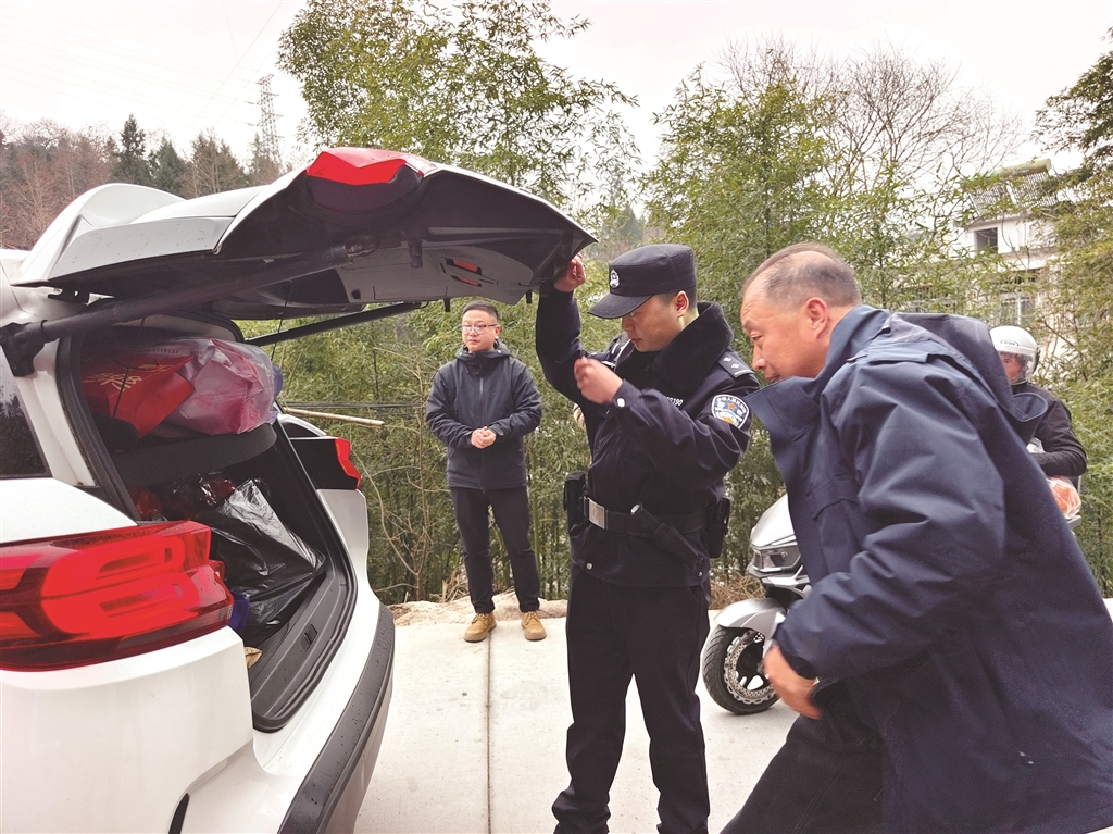 石泉縣公安局在城關(guān)鎮(zhèn)三里溝北辰森林公園設(shè)卡檢查,筑牢森林防火“安全墻”,守路口、護(hù)平安、倡新風(fēng)。楊勇 攝