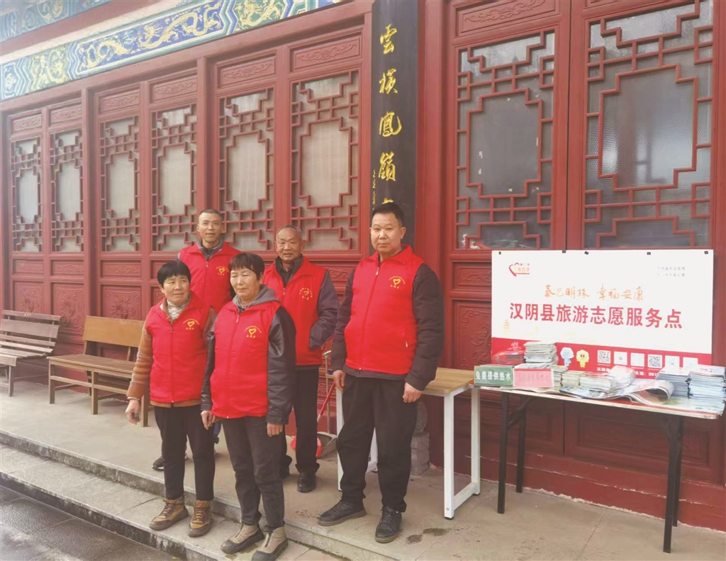 春節(jié)期間,志愿者在漢陰縣龍崗公園堅(jiān)守崗位。他們放棄與家人團(tuán)聚的時(shí)光,用行動(dòng)詮釋奉獻(xiàn)與擔(dān)當(dāng),守護(hù)游客的平安與歡樂(lè)。王磊 攝