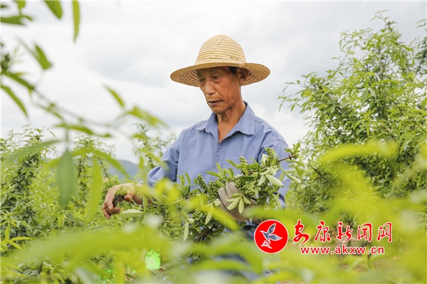 正在剪花椒的王忠存幾乎被枝丫擋嚴(yán)實(shí)了。“我在這兒干了兩年多了,自家的土地也流轉(zhuǎn)過來,每畝給200塊。一年在這干活,好一點(diǎn)能收入七、八千呢。” 說起這兩年的收入,王忠存口齒清晰,中氣十足。