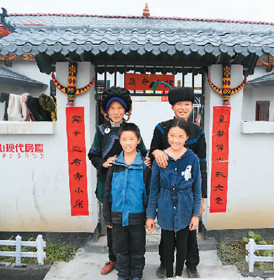 | 東西部扶貧協(xié)作推動(dòng)區(qū)域協(xié)調(diào)發(fā)展。圖為6月19日四川涼山州申果鄉(xiāng)達(dá)布村貧困戶阿牛爾鐵一家在易地搬遷后的新居前合影。 |