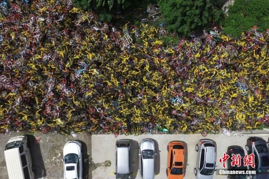 資料圖:堆積如山的共享單車。中新社記者 李進紅 攝