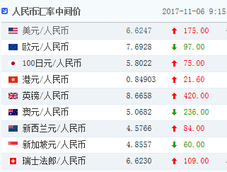 中國人民銀行授權(quán)中國外匯交易中心公布,2017年11月6日銀行間外匯市場人民幣匯率中間價為:1美元對人民幣6.6247元,1歐元對人民幣7.6928元,100日元對人民幣5.8022元,1港元對人民幣0.84903元,1英鎊對人民幣8.6658元,1澳大利亞元對人民幣5.0682元,1新西蘭元對人民幣4.5766元,1新加坡元對人民幣4.8557元,1瑞士法郎對人民幣6.6230元,1加拿大元對人民幣5.1922元,人民幣1元對0.63912馬來西亞林吉特,人民幣1元對8.8913俄羅斯盧布,人民幣1元對2.1441南非蘭特,人民幣1元對168.31韓元,人民幣1元對0.55429阿聯(lián)酋迪拉姆,人民幣1元對0.56597沙特里亞爾,人民幣1元對40.3678匈牙利福林,人民幣1元對0.55153波蘭茲羅提,人民幣1元對0.9672丹麥克朗,人民幣1元對1.2724瑞典克朗,人民幣1元對1.2322挪威克朗,人民幣1元對0.58621土耳其里拉,人民幣1元對2.8929墨西哥比索。JxD安康新聞網(wǎng)