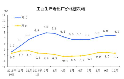 統(tǒng)計局:10月份PPI同比上漲6.9% 環(huán)比上漲0.7%