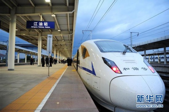 11月13日,55601次動車組試驗列車抵達江油站。新華社發(fā)(張博文攝)