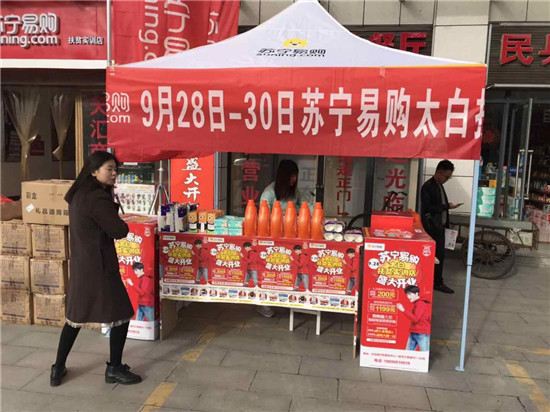 太白電商實(shí)訓(xùn)扶貧店是蘇寧易購在陜西布局的第7家扶貧實(shí)訓(xùn)店,點(diǎn)對點(diǎn)精準(zhǔn)扶貧,履行企業(yè)的社會責(zé)任,依托自身O2O智慧零售的優(yōu)勢,構(gòu)建精準(zhǔn)扶貧長效機(jī)制在陜西進(jìn)行積極的嘗試和探索。一家扶貧實(shí)訓(xùn)店的開始,全年累計(jì)為當(dāng)?shù)嘏嘤?xùn)輸出60人次,共計(jì)發(fā)放10.2萬薪資,相當(dāng)于一年解決了當(dāng)?shù)?0個(gè)貧困家庭。實(shí)訓(xùn)學(xué)員在日常工作過程中,可將所在地的特色農(nóng)產(chǎn)品推薦到實(shí)訓(xùn)店,由實(shí)訓(xùn)店進(jìn)行線上銷售。