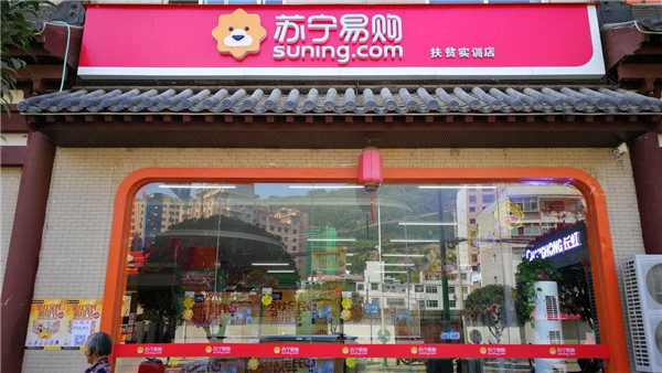 電商扶貧實訓店是蘇寧在多年精準扶貧的經驗基礎上,于2017年推出的一種新的模式。實訓店模式通過屬地化公司注冊、目標建檔立卡、貧困人員定向就業(yè)實訓、線上線下營銷技能培養(yǎng)、服務業(yè)務承接等方式,實現就業(yè)扶貧、培訓扶貧在本地的落地。同時,以“前店后廠”的方式,推動“農產品上行”和“工業(yè)品下行”,進一步激活當地農村電商的潛力。這也是全國首創(chuàng)的一種新模式,通過銷售+實訓+經營分成的創(chuàng)新扶貧模式,著力培養(yǎng)電商人才,幫助當地貧困人員創(chuàng)收脫貧。