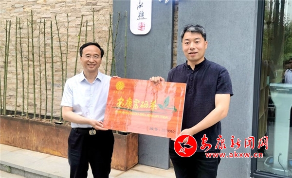活動結束后,魯琦一行還來到西安市曲江新區(qū)雁鳴湖茶莊為京康現(xiàn)代農業(yè)有限公司安康富硒茶專營店授牌。GDa安康新聞網(wǎng)