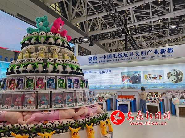 今年五月,第五屆絲綢之路國(guó)際博覽會(huì)暨中國(guó)東西部合作與投資貿(mào)易洽談會(huì)在西安舉行。走進(jìn)安康展館,毛絨玩具搭建的小山格外顯眼,十四運(yùn)吉祥物“秦嶺四寶”占據(jù)C位,展廳四周也用毛絨玩具娃娃進(jìn)行點(diǎn)綴。前來(lái)拍照、采購(gòu)、咨詢(xún)的市民絡(luò)繹不絕。不少企業(yè)現(xiàn)場(chǎng)接到訂單。