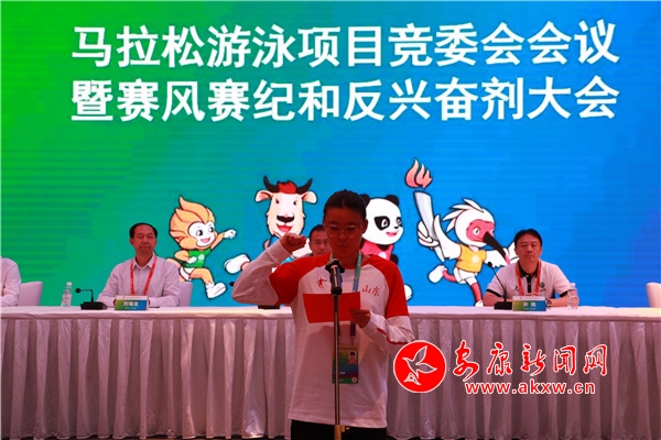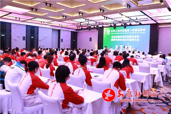 許琦宣讀了《第十四屆全國運動會賽風(fēng)賽紀(jì)違規(guī)處罰規(guī)定》、《第十四屆全國運動會賽風(fēng)賽紀(jì)和反興奮劑工作的通知》。運動員、教練員、技術(shù)官員代表進(jìn)行了反興奮劑宣誓,競委會各處室負(fù)責(zé)人、全體技術(shù)官員、各運動隊簽署了賽風(fēng)賽紀(jì)和反興奮劑承諾書。