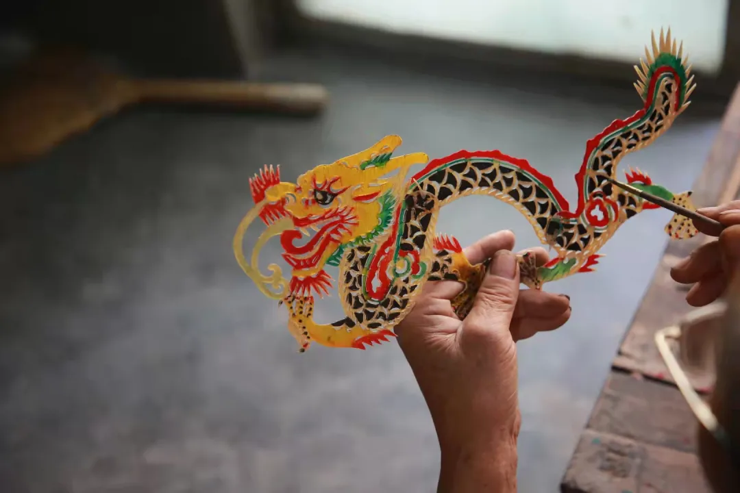 “雕刻一張皮影,從選皮制皮、描稿走刀到染色組裝,要經(jīng)過二十多道制作工序,最快也得3天時間。冬天天氣冷時,一件影人做成需要1個月的時間。”說完,唐章根從一個老木箱子里拿出一張皮影,各類道情劇目所用到的人物、動物、布景,形形色色、林林總總都印在他腦子里。