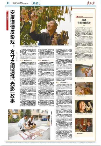 10月31日,《陜西日報》8版“縱覽”欄目就“安康道情皮影”非遺保護項目進行了專題報道,對“安康道情皮影”這一優(yōu)秀地方非物質(zhì)文化遺產(chǎn)項目及漢濱區(qū)在非遺項目保護、傳承方面工作具體做法進行了介紹,受到了社會各界的廣泛關(guān)注。今天,我們對報道進行轉(zhuǎn)發(fā),希望更多的朋友關(guān)注、守護我們寶貴的地方非物質(zhì)文化遺產(chǎn),傳承延續(xù)地方文脈和人文精神。