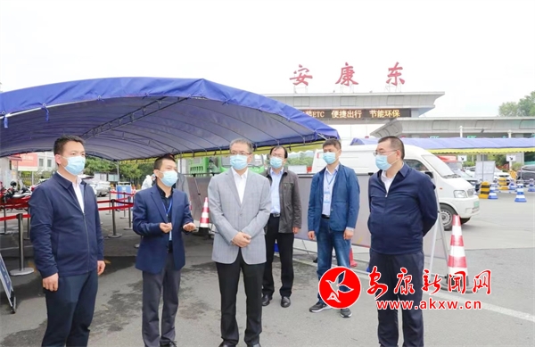 王浩(左三)一行在十天高速安康東收費站疫情防控卡點暗訪檢查常態(tài)化疫情防控措施落實情況