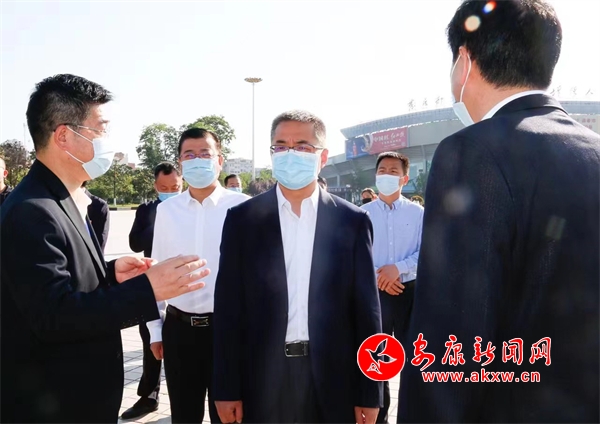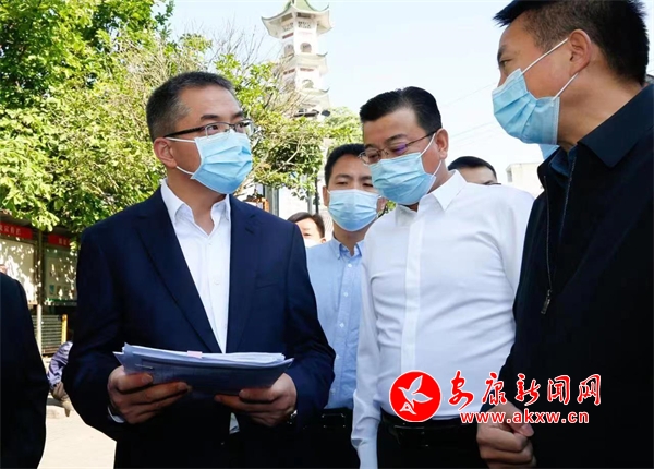 王浩(左三)一行在金州廣場(chǎng)核酸檢測(cè)采樣點(diǎn)檢查中心城區(qū)重點(diǎn)人群全員核酸檢測(cè)開展情況
