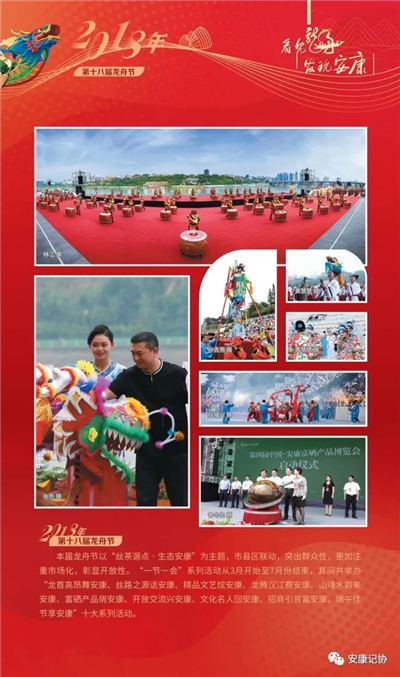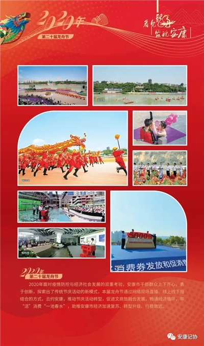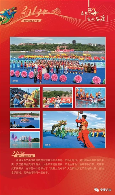 每一個珍貴的瞬間,都是安康社會發(fā)展的典藏。安康漢江龍舟競渡歷史悠久、源遠(yuǎn)流長。特別是進(jìn)入新世紀(jì)以來的2000年至今,“中國安康漢江龍舟節(jié)”已成功舉辦21屆,先后入選“中國十大魅力節(jié)慶”、中國體育類非物質(zhì)文化遺產(chǎn)保護(hù)與推廣項目,成為我市聚集人氣、繁榮文化、發(fā)展經(jīng)濟(jì)、擴(kuò)大開放的金色名片。
