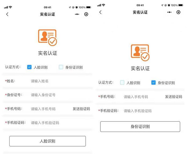第二步,選擇“人臉識別”或“身份證識別”,按照提示填寫信息,完成實名認證。