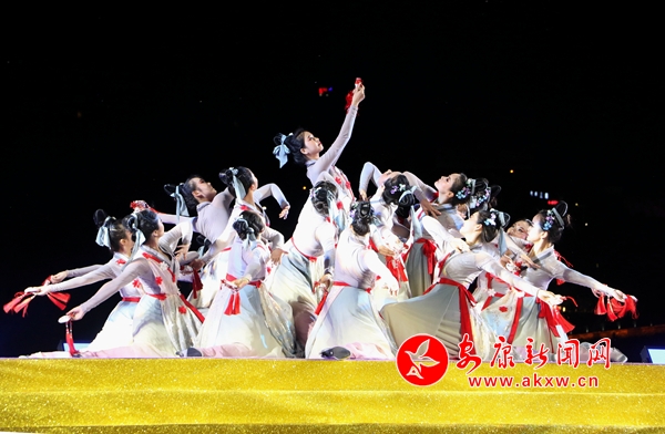 粼粼波光微微風(fēng),樂舞燈火“靚”漢江。演出以絢麗奪目的燈光秀《多彩漢江》開場,漢江兩岸五光十色的燈光隨著音樂的節(jié)律不斷變換、舞動(dòng),使得一江兩岸如夢如幻、詩意盎然,動(dòng)感十足的爵士舞蹈《動(dòng)感安康》展現(xiàn)了安康的青春活力,原汁原味的本地歌舞《山歌不唱不開懷》《漢水旗韻》《荷包香安康》《漢江漁歌》《喬木花》《號子·龍舟》等以獨(dú)特的唱腔、曼妙的舞姿展現(xiàn)傳統(tǒng)漢水文化以及秦巴兒女勤勞淳樸的精神風(fēng)貌,熱情激昂的歌舞《母親安康》演唱出漢水兒女熱愛山水的樸素愿望和對美好生活的向往。演出期間,旅游形象大使還對紫陽、漢陰、嵐皋等縣區(qū)的特產(chǎn)、美食、旅游景點(diǎn)、傳統(tǒng)文化等進(jìn)行推介。