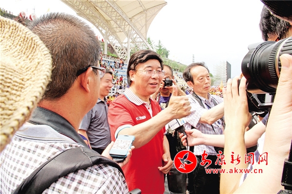 2016年,第十六屆安康龍舟節(jié)開(kāi)幕式上,央視著名體育解說(shuō)員韓喬生點(diǎn)贊安康龍舟節(jié)。 陳榮斌 攝