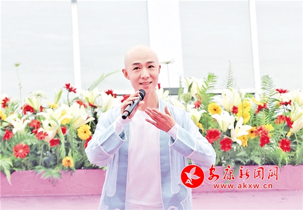 2021年,第二十一屆安康龍舟節(jié),“梅蘭芳第三代傳人”安康人董飛為開幕式獻(xiàn)唱。 潘潤生 攝BDi安康新聞網(wǎng)
