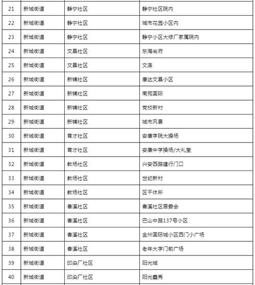 附件:漢濱區(qū)中心城區(qū)全員核酸檢測采樣點一覽表