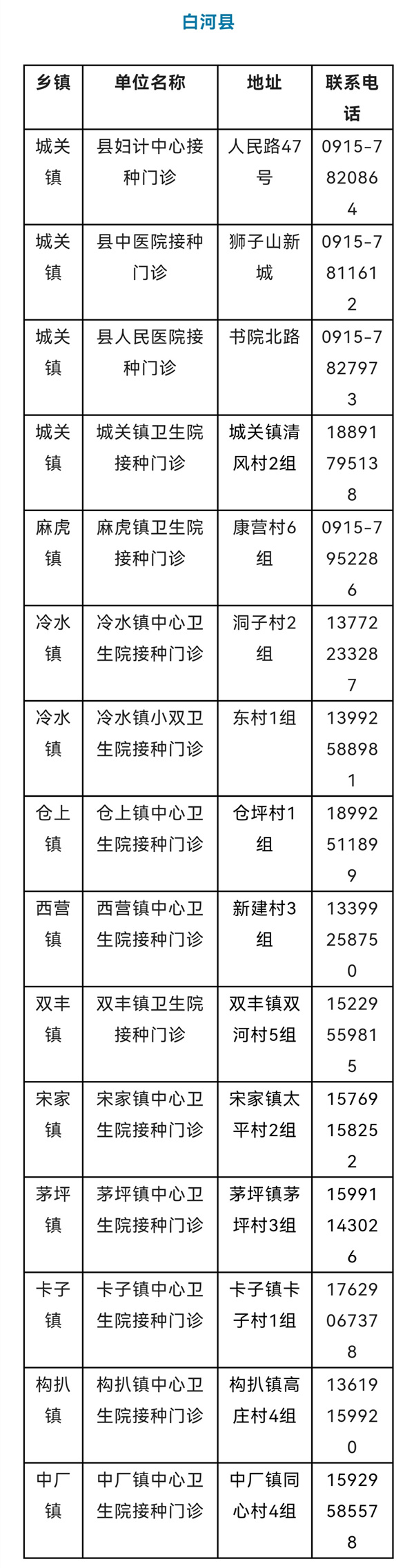 最新!安康縣(市、區(qū))接種新冠疫苗點位匯總