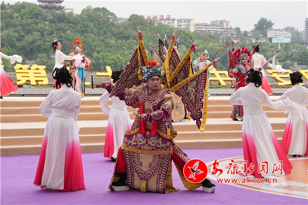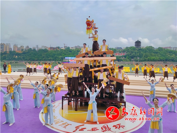 渾厚雄壯的“喊江調(diào)子”中,江面28艘龍舟抖擻精神、踏浪而來,江岸健身龍表演同步登場,朝氣蓬勃。歌舞《安安康康鬧龍舟》、陜南民歌聯(lián)唱《漢水歡歌》、龍舟橫渡、健身操《活力安康》配合摩托艇“水上飛人”、傳統(tǒng)漢劇《漢江上傳唱著漢調(diào)二黃》等精彩節(jié)目輪番上演,搶鴨子摸鯉魚、民俗舞蹈《方寸之間》等安康特有民俗節(jié)目將現(xiàn)場氛圍推上一輪又一輪高潮。最終,開幕式在歌舞《幸福安康》中圓滿落下帷幕。