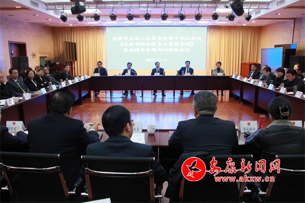 本網(wǎng)訊(記者 黃慧慧)12月27日,在市五屆人大常委會(huì)第十四次會(huì)議期間,市人大常委會(huì)召開《安康市物業(yè)服務(wù)與管理?xiàng)l例》(以下簡(jiǎn)稱《條例》)貫徹實(shí)施情況專題詢問會(huì)議。市人大常委會(huì)副主任王孝成、趙立根、李全成、楊首艷,秘書長(zhǎng)左自文及委員和列席市人大代表出席會(huì)議。副市長(zhǎng)周耀宜參加會(huì)議并做表態(tài)發(fā)言。漢濱區(qū)政府、高新區(qū)管委會(huì),市發(fā)改、住建、公安、民政、城管、自然資源、應(yīng)急管理、水務(wù)集團(tuán)和逸華天然氣公司等部門負(fù)責(zé)同志到會(huì)聽取意見、回答詢問。47X安康新聞網(wǎng)