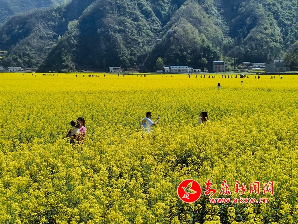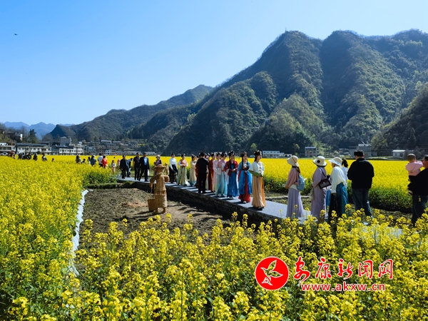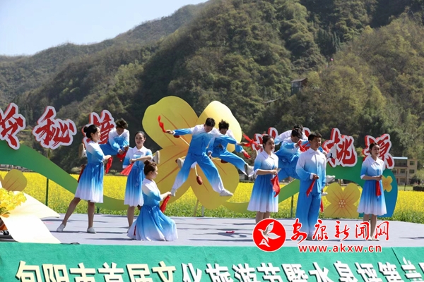 活動現(xiàn)場,旬陽市仁河口鎮(zhèn)水泉坪景區(qū)萬畝油菜花海在陽光照耀下嬌俏迷人,和煦春風(fēng)拂面而來,花海泛起層層疊疊的金色浪潮,濃郁的花香令人沉醉,絡(luò)繹不絕的觀眾和游客不時(shí)駐足拍照。精彩的文藝演出更是輪番上演,歌曲《油菜花開了》《旬陽人》、表演唱《庭院經(jīng)濟(jì)富農(nóng)家》、舞蹈《盛世花開》《家鄉(xiāng)的油菜花》《春頌》、嗩吶獨(dú)奏《百鳥朝鳳》、音樂快板《紅色傳承譜華章》、大筒子小戲《勸賭》等節(jié)目,讓觀眾目不暇接、贊不絕口,為景區(qū)增添了文化內(nèi)涵、營造了藝術(shù)氛圍、給繁花似錦的油菜花海注入了生機(jī)活力。KB4安康新聞網(wǎng)