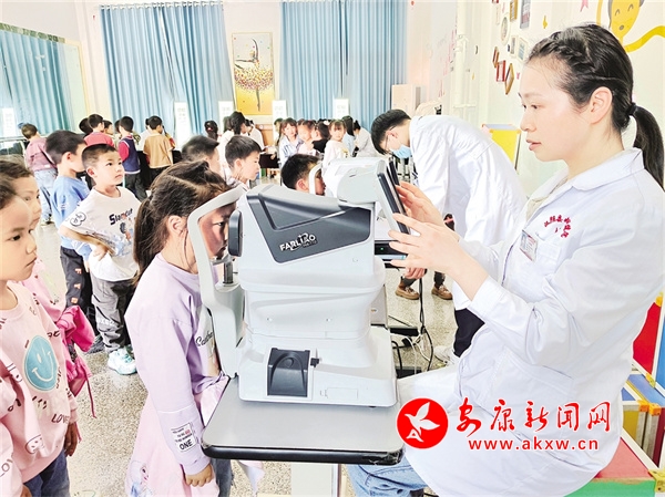 4月17日,漢陰縣婦幼保健院到蒲溪鎮(zhèn)小學(xué)教育集團(tuán)開(kāi)展學(xué)生視力檢測(cè)。 鄧永新 攝Uhh安康新聞網(wǎng)