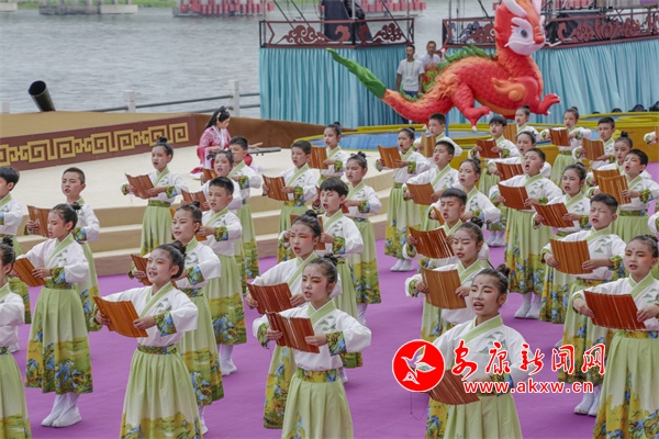 是日,遠(yuǎn)山如黛,近水碧綠,兩岸觀者如潮。“恭請(qǐng)先賢。”隨著主祭官洪亮的聲音響起,屈原雕像被緩緩護(hù)送到舞臺(tái)中央。百名童子,手持竹簡(jiǎn),齊聲詠頌祭文。緊接著,身著青綠漢服女子,一列走向江邊把竹籃里面的粽子拋入江中,追念先賢,另一列繞場(chǎng)為觀眾贈(zèng)發(fā)香包,送上祝福。eCJ安康新聞網(wǎng)