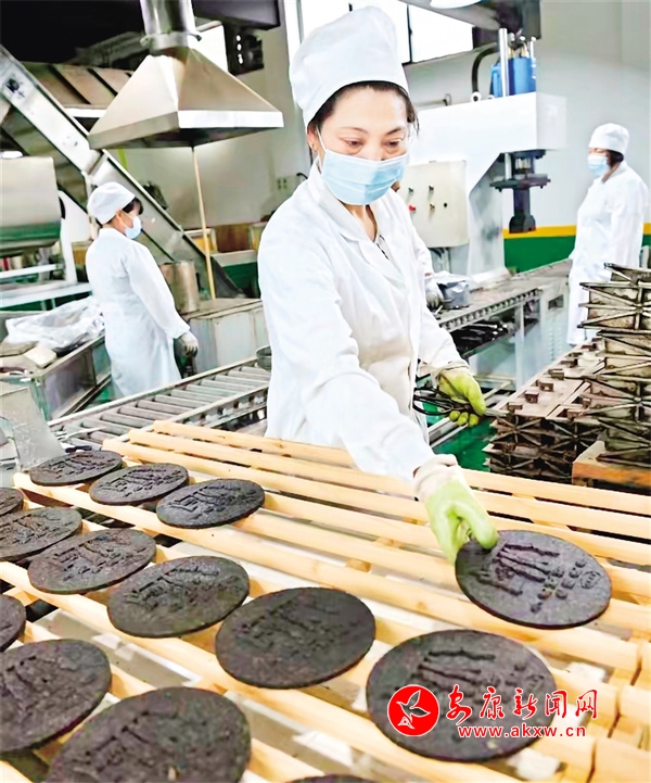 一茗茶業(yè)公司員工在制作茯茶gp5安康新聞網(wǎng)