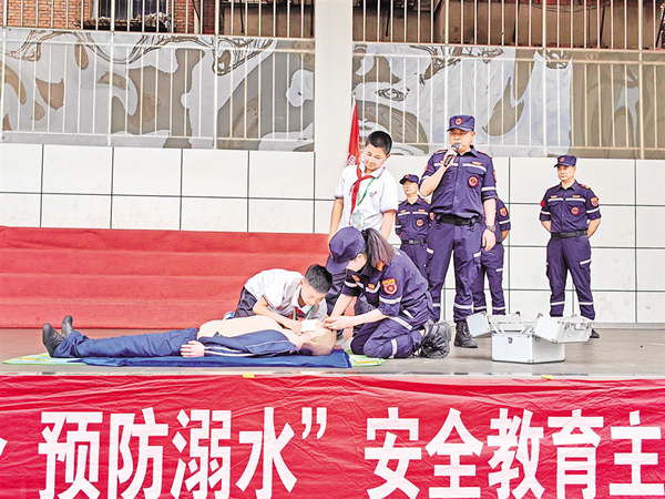 漢江志愿者救生隊進學校開展防溺水知識演練。鄭時根 攝yiY安康新聞網