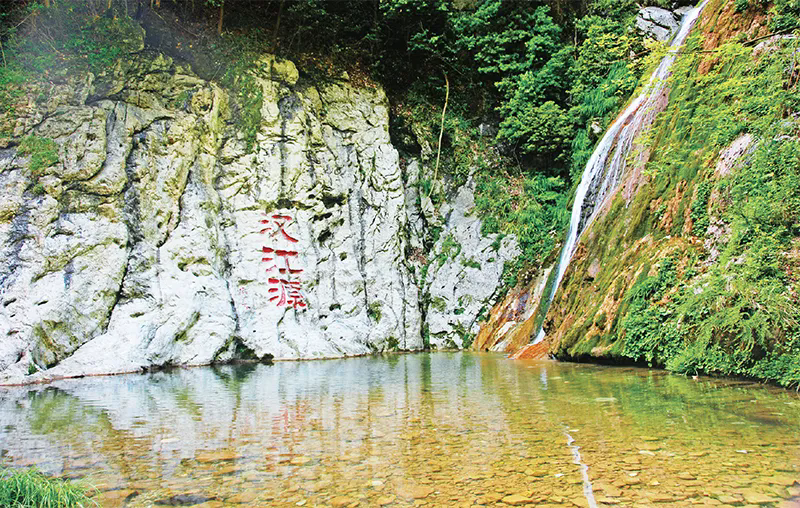 炎炎夏日,秦巴秀水掩映之間,在陜西省漢中市寧強(qiáng)縣漢水源國家濕地公園,一條清澈小溪蜿蜒淌出,溯溪而上,紅豆杉、香果樹等漫山遍野、郁郁蔥蔥,游人如同行走在水墨丹青畫卷中,美不勝收。河谷腹地深處,奇峰怪石點(diǎn)綴,飛瀑流泉高懸,旁邊崖壁上鐫刻著“漢江源”3個(gè)大字。