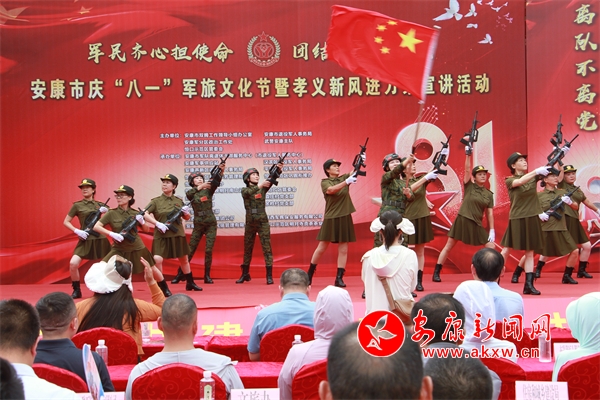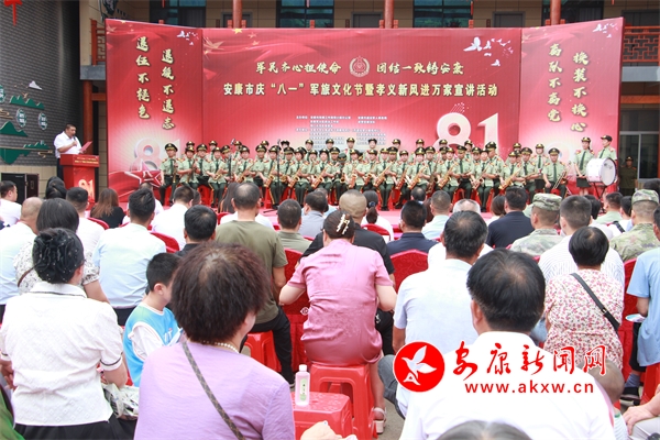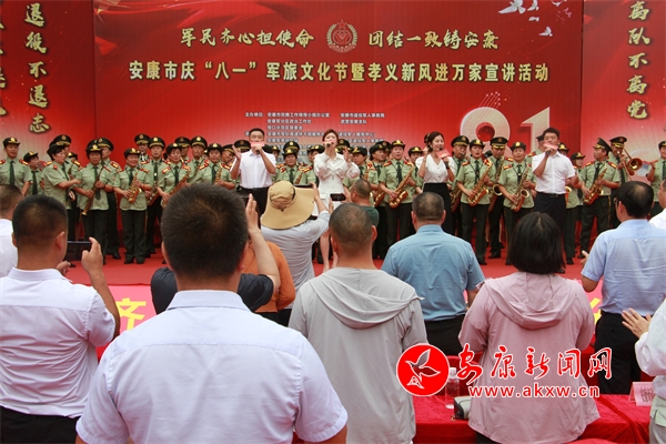 本網(wǎng)訊(記者 黃慧慧 通訊員 王典根)軍愛民,民擁軍,軍民融合情誼深。7月27日,由安康市雙擁工作領(lǐng)導(dǎo)小組辦公室、安康市退役軍人事務(wù)局、安康軍分區(qū)政治工作處、武警安康支隊(duì)、恒口示范區(qū)管委會(huì)共同主辦,以“軍民齊心擔(dān)使命 團(tuán)結(jié)一致鑄安康”為主題的安康市慶“八一”軍旅文化節(jié)暨孝義新風(fēng)進(jìn)萬家宣講活動(dòng)在恒口示范區(qū)南月村舉行,軍地領(lǐng)導(dǎo)、部隊(duì)官兵、退役軍人、現(xiàn)役軍人家屬及群眾代表共300余人參加活動(dòng)。