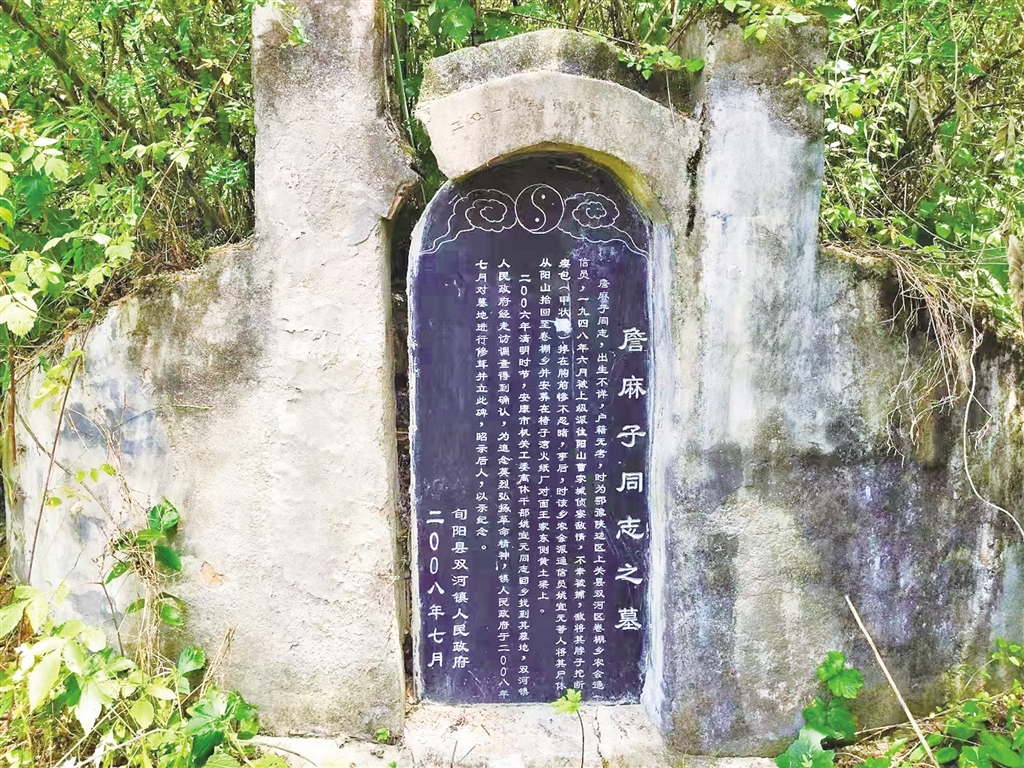 在旬陽市雙河鎮(zhèn)卷棚村老火紙場,一個小地名叫做椅子灣的對面黃土梁上,安葬著一位當(dāng)?shù)卮迕窨诳谙鄠,傳了一輩又一輩,每一輩人都只知道這座無名烈士墓的墓主人,外號叫“詹麻子”,至于他是哪里人,生于何時(shí),犧牲時(shí)多大,有無兄弟姐妹與妻兒等,現(xiàn)如今仍無人知曉。