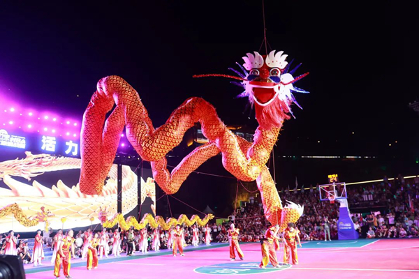 開(kāi)幕式規(guī)模宏大,異常精彩。貴州廣播電視臺(tái)知名節(jié)目主持人、貴州村BA節(jié)目主持人李旭涵、劉子豪兩位重量級(jí)主持人親臨主持,熟練專業(yè)而又激情的引導(dǎo)互動(dòng)為開(kāi)幕式晚會(huì)增添爆棚氛圍。歌手沙寶亮傾情演唱《最初的信仰》《又回首》《暗香》等歌曲,世界散打冠軍、國(guó)家散打隊(duì)主教練許家恒,全國(guó)競(jìng)走冠軍陳珍、全國(guó)青運(yùn)會(huì)冠軍田紫丹的互動(dòng)以及本土節(jié)目《旗開(kāi)得勝》《歡迎你到嵐皋來(lái)》《巴山魔芋情》等將嵐皋豐厚的旅游資源、特色產(chǎn)品、人文風(fēng)情展現(xiàn)得淋漓盡致。無(wú)比酷炫的燈光秀、煙花秀閃耀全場(chǎng),56米巨龍騰空而起,光與影的交織變換構(gòu)成了一幅幅絕妙畫卷,現(xiàn)場(chǎng)掌聲雷動(dòng),喝彩聲、吶喊聲此起彼伏。Gef安康新聞網(wǎng)